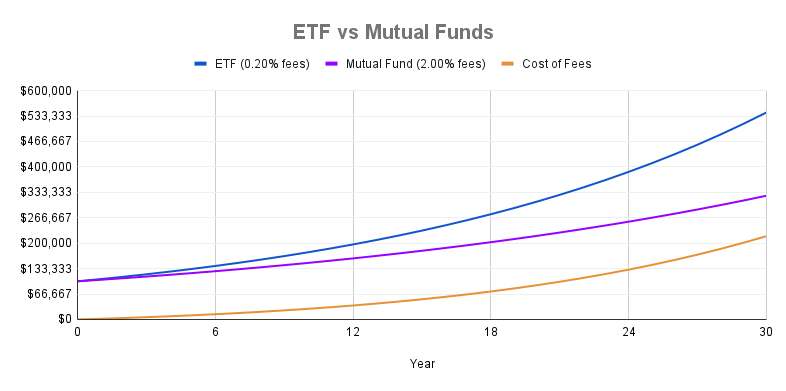 Even a 1% fee difference costs you hundreds of thousands over 30 years.